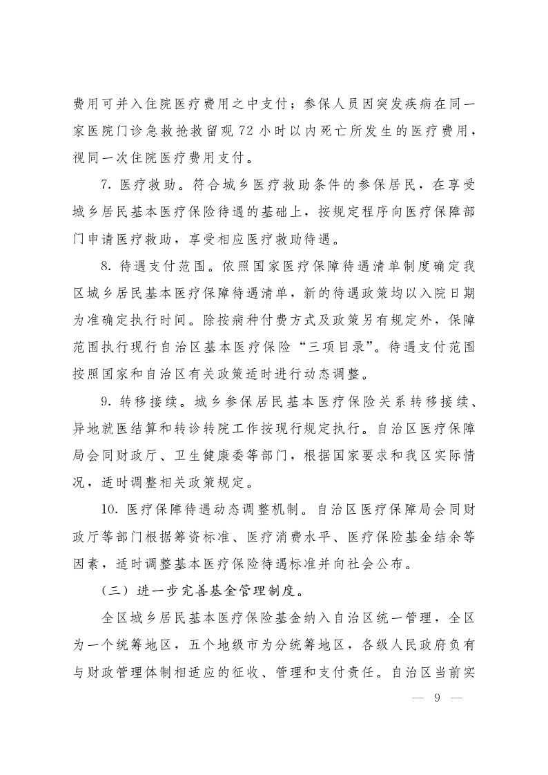 《关于进一步完善城乡居民基本医疗保险自治区级统筹制度的意见》政策解读